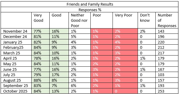Please find the results of our Friend and Family survey for the last year. Patients were asked to answer the question “Overall, how was your experience of our service?” You can complete this questionnaire via our website by clicking here